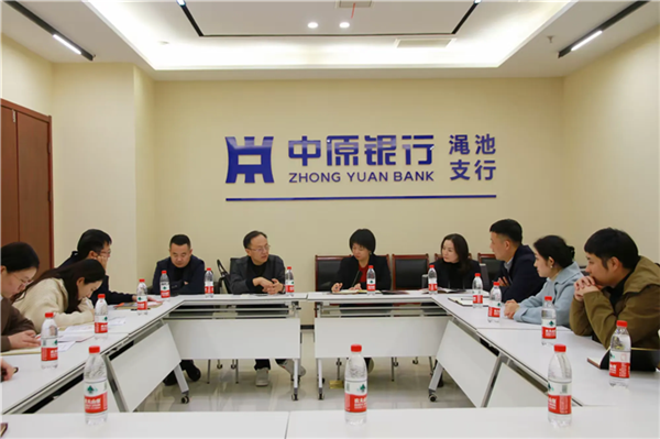 參觀結束后,雙方就融資模式,創(chuàng)新銀企合作方式等問題進行座談交流。昌通路橋公司總經理趙鑫就公司發(fā)展歷程、項目建設情況、資金情況、公司未來發(fā)展規(guī)劃等方面進行介紹,期望加強與澠池支行的合作,增加良性互動,積極拓展合作領域。中原三門峽分行黨委委員、行長助理孫磊磊就支行情況、金融產品、合作模式等方面進行介紹,期望雙方增強互信和信息交流,發(fā)揮優(yōu)勢互補,推動銀企合作全面升級。