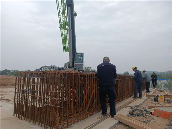 大壩向0#橋臺蓋梁鋼骨架吊裝綁扎