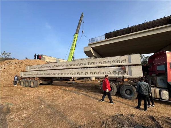 大壩向第一跨空心板預制梁架設